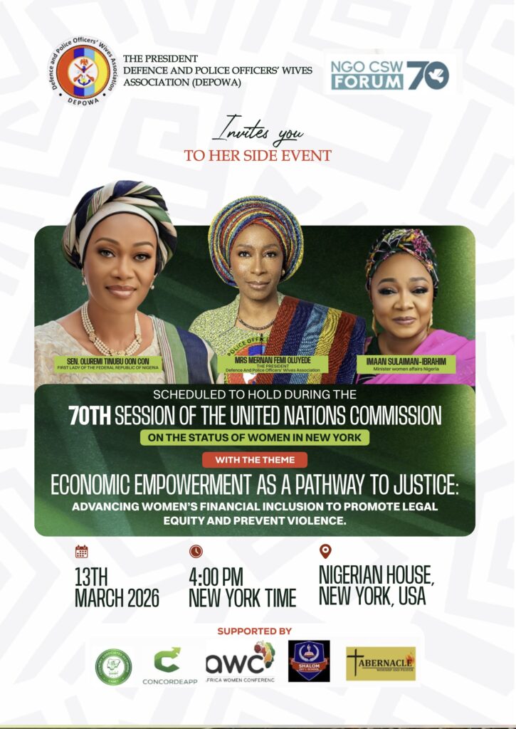 The Defence and Police Officers' Wives Association (DEPOWA) is an Association of women bound together by their marriage to Military and Police Officers in Nigeria working towards enhancing lives of people within and outside the Military and Police Barracks.