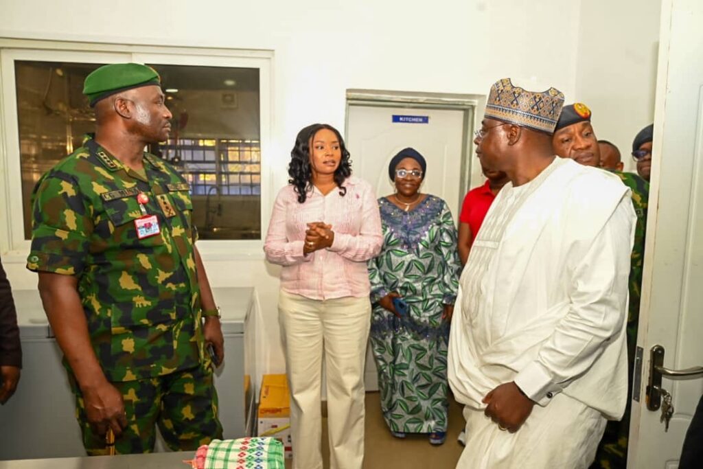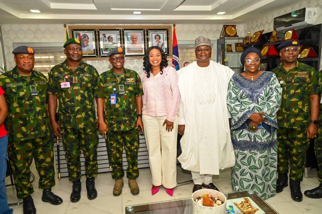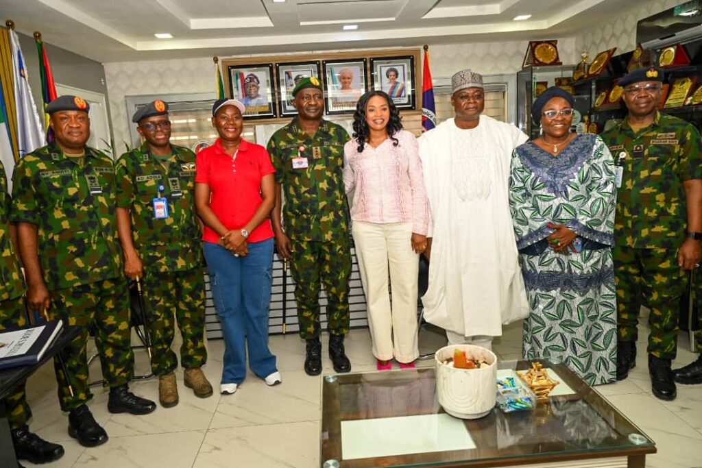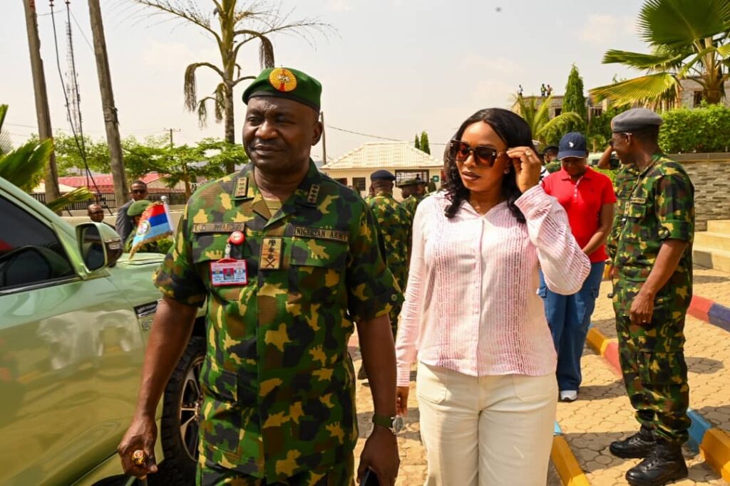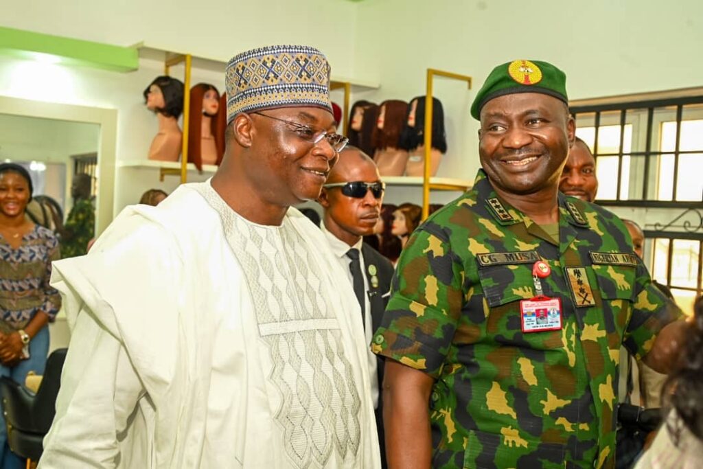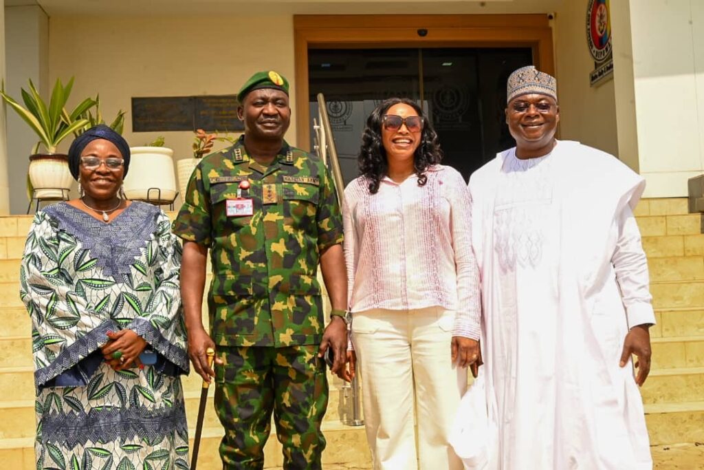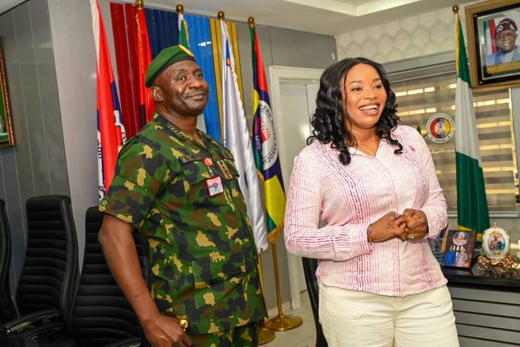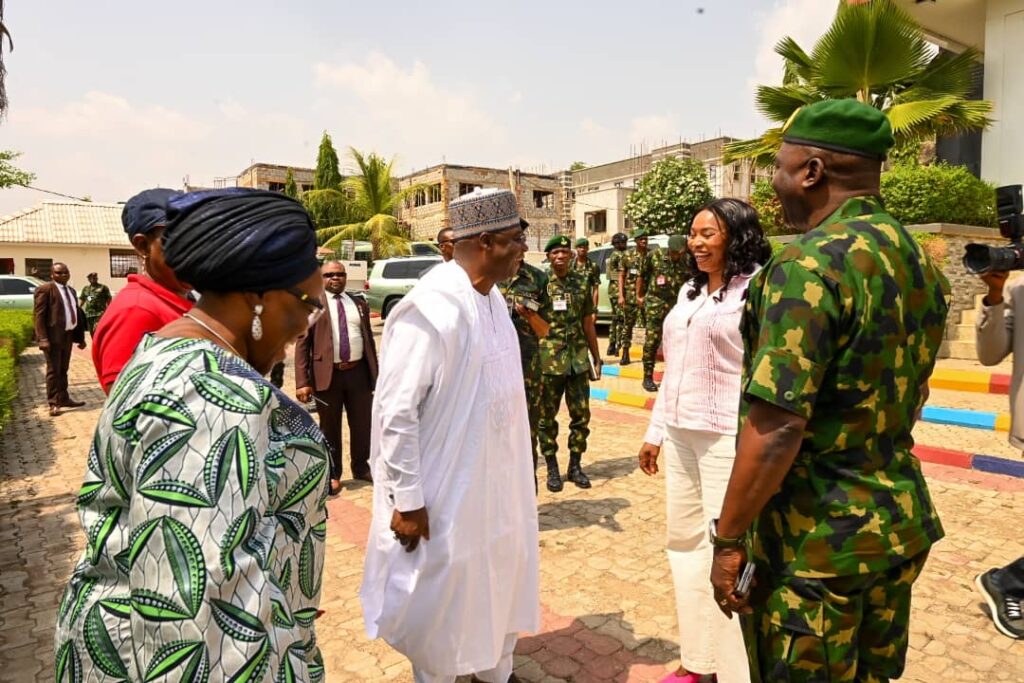 The Chief of Defence Staff(CDS) General Christopher Gwabin Musa paid a working visit to the DEPOWA Secretariat today 4 April 2024. He was received by the President DEPOWA Mrs Oghogho Musa and thereafter went on a tour of the DEPOWA Skill Acquisition Centre were trainees are taught on Catering Services, Fashion Designing,Hair Making/makeup and Gele Tying. Others are Production of house hold products, Information Communication Technology and Barbing. The CDS also inspected the DEPOWA Guest house that will soon be commissioned. In his remark, he appreciated the President DEPOWA for her leadership and urged all the staff of DEPOWA to remain committed to their duties.