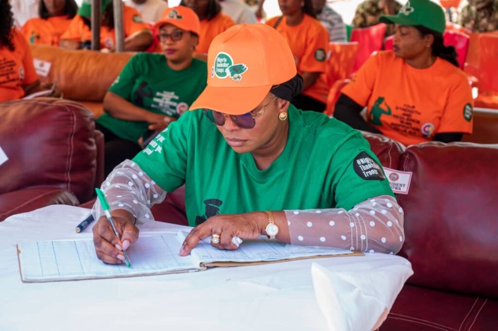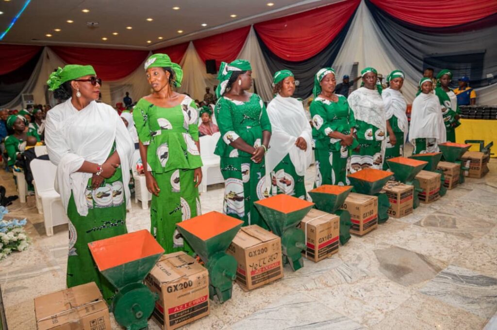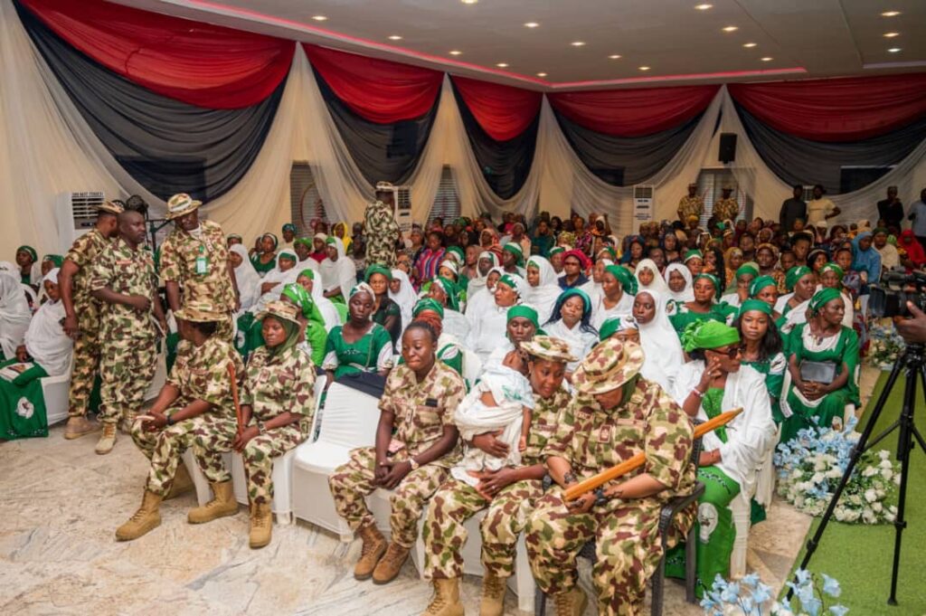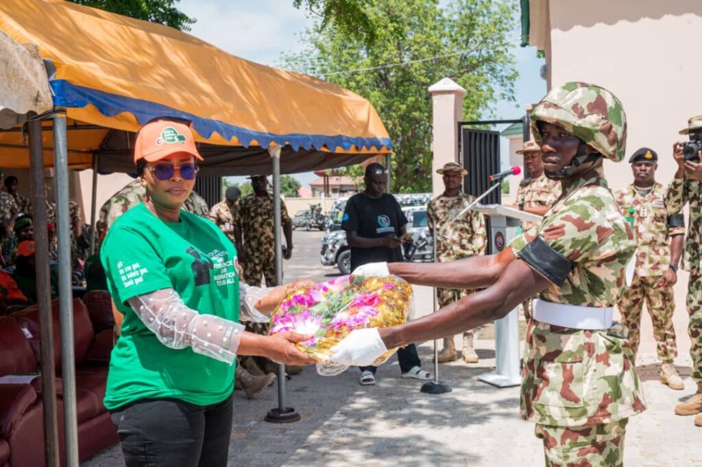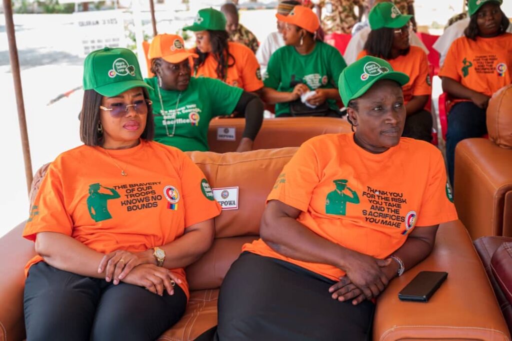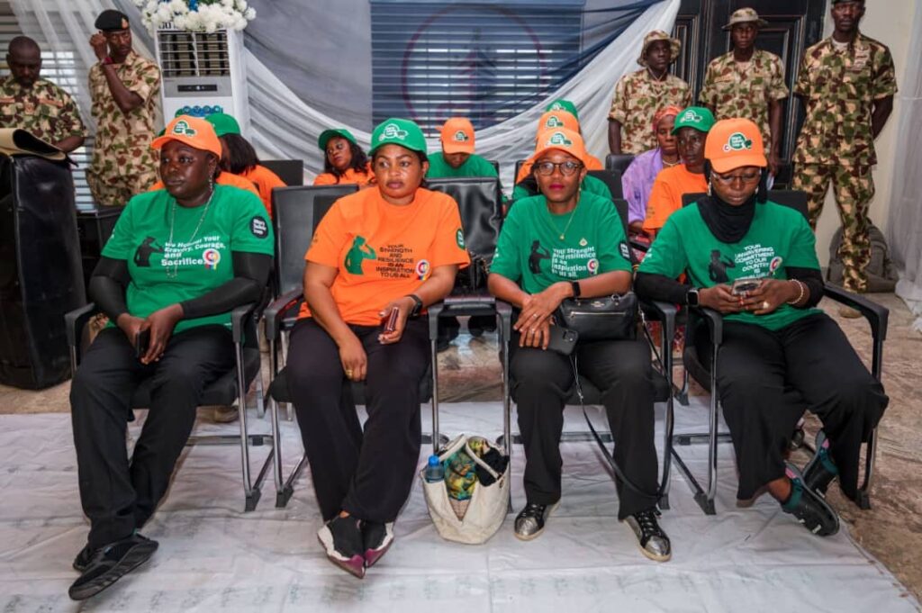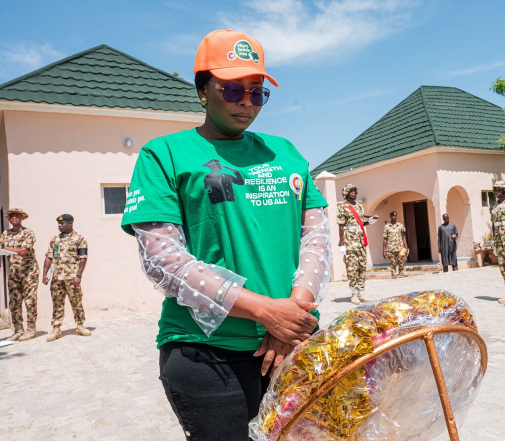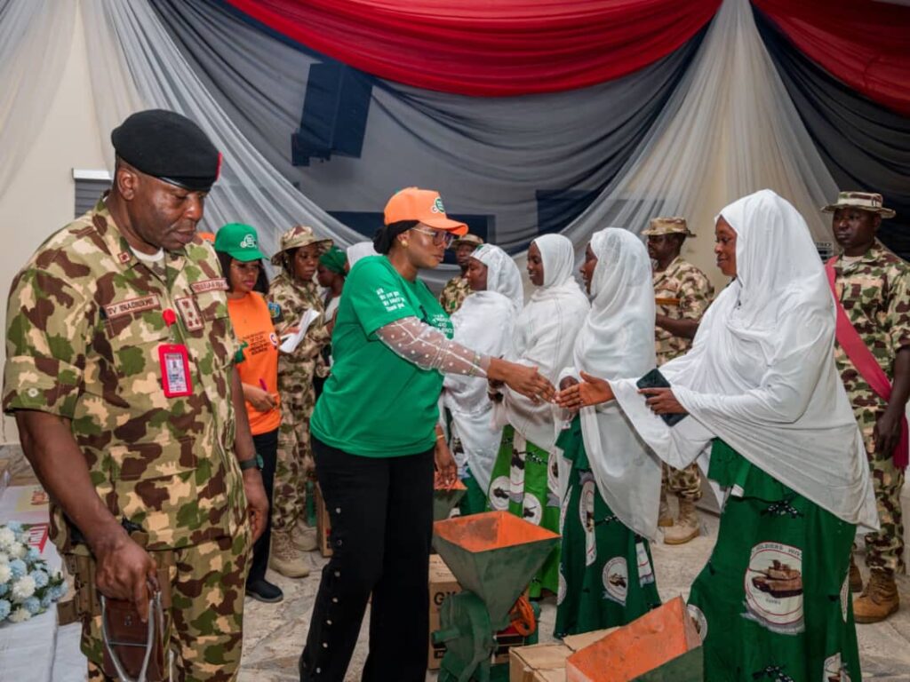 Mrs Oghogho Gwabin Musa had an interactive session with the wives of troops where she donated 20 grinding machines to wives of the soldiers and made cash presentations of N200,000 each to 32 widows of fallen heroes.