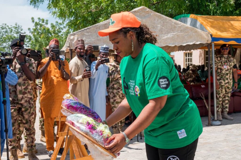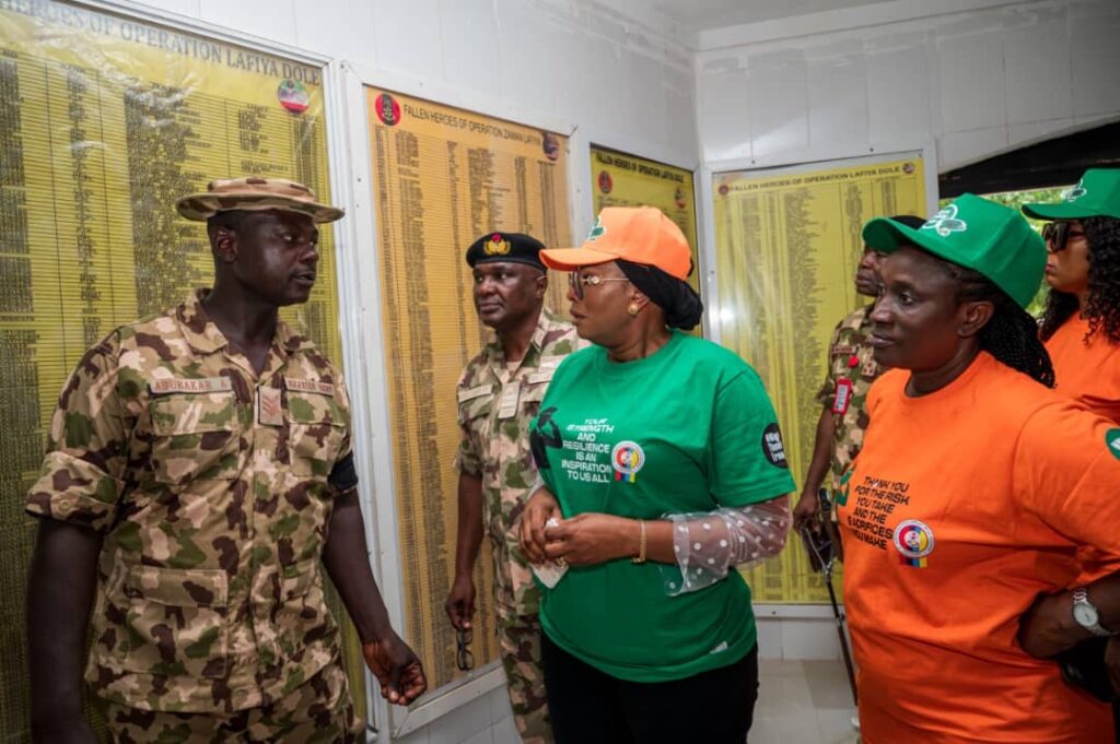 The second day of the President DEPOWA, Mrs Oghogho Gwabin Musa working visit to Maiduguri, Bornu state started with the Wreath Laying Ceremony at the Maimalari Military Cantonment Cemetery on Tuesday, 12 August 2025.