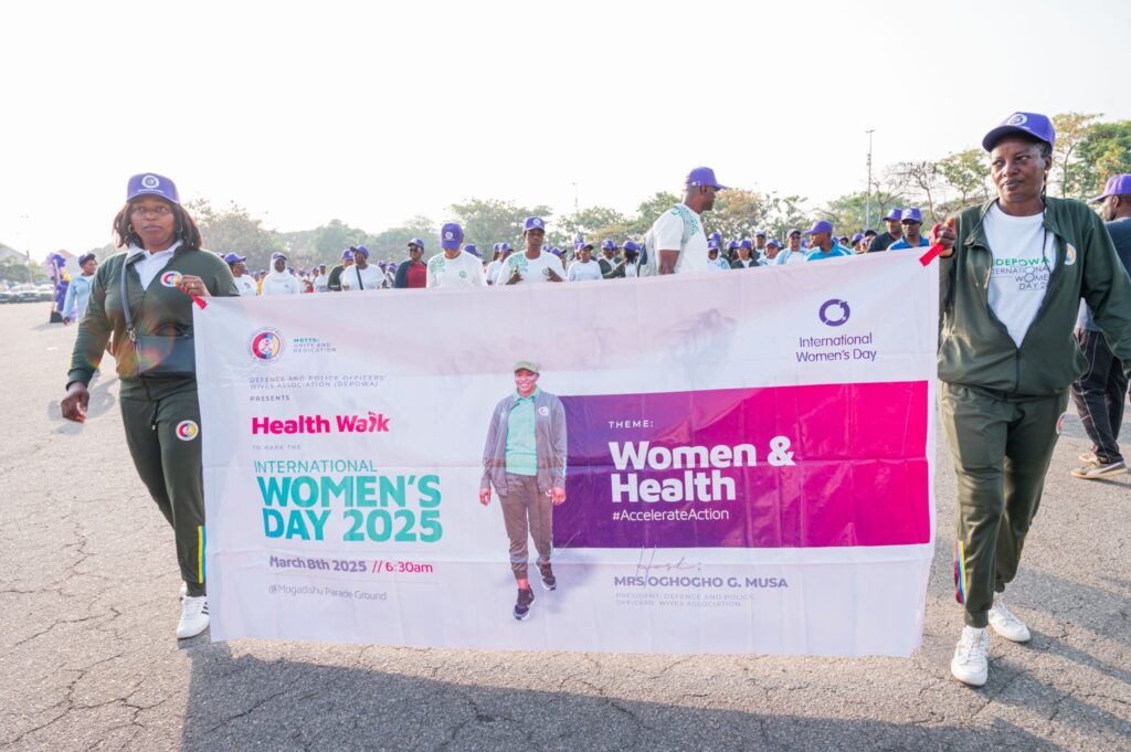 The Defence and Police Officers’ Wives Association (DEPOWA), observed the International women’s Day with a health walk on 8 March 2025 at Mogadishu ,Cantonement Abuja. In her remarks the President DEPOWA Mrs Oghogho Gwabin Musa, during her remarks, thanked all women who made it to the health walk and wished them a Happy International Women’s Day. Furthermore, she re-echoed that “the theme for this year’s celebration: “Women and Health Accelerate Action,” resonates deeply with us as we strive for a more inclusive gender equitable society”. Mrs Musa urged women to remain committed in promoting women empowerment, providing support to women and families in need. The President DEPOWA appealed to institutions and individuals to accelerate action and implement more policies and programs that promote women’s empowerment.