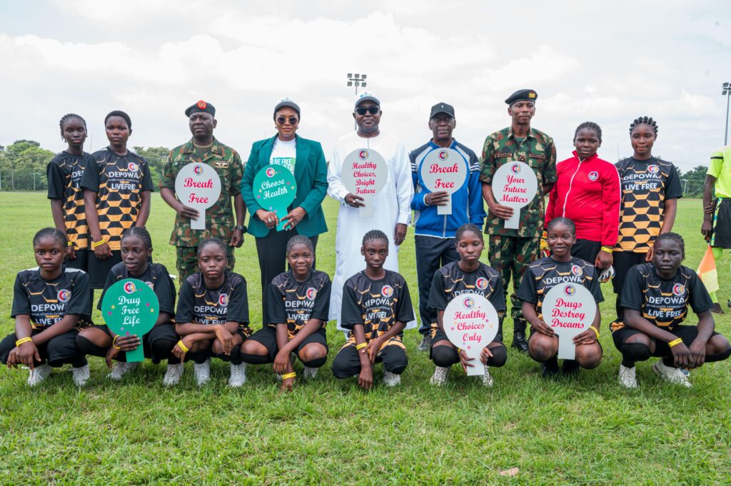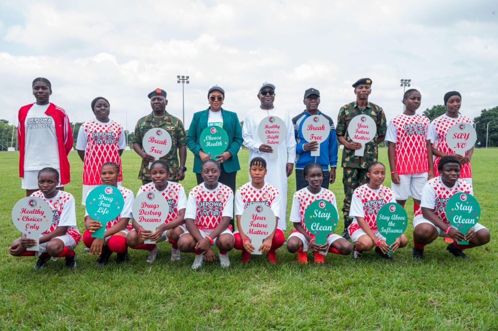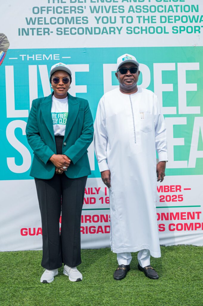 The Defence and Police Officers’ Wives Association (DEPOWA), Mrs. Oghogho Gwabin Musa, on Monday, 22 September 2025, flagged off the DEPOWA Inter-Secondary School Sports competition at Guards Brigade Sports Complex, Aguyi Ironsi Cantonment, Asokoro, Abuja. An event, designed as a sports-based drug abuse prevention program, with the theme “Live Free, Stay Clean.”