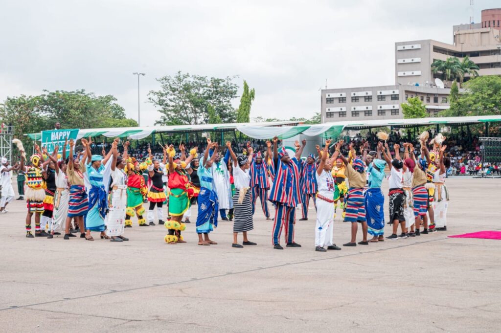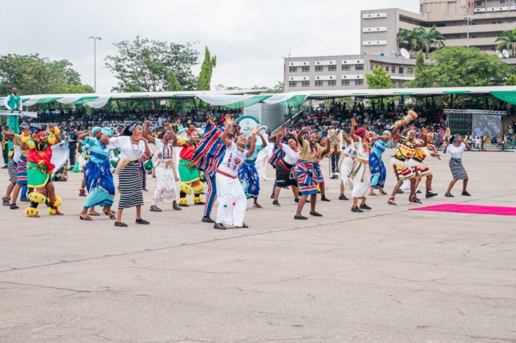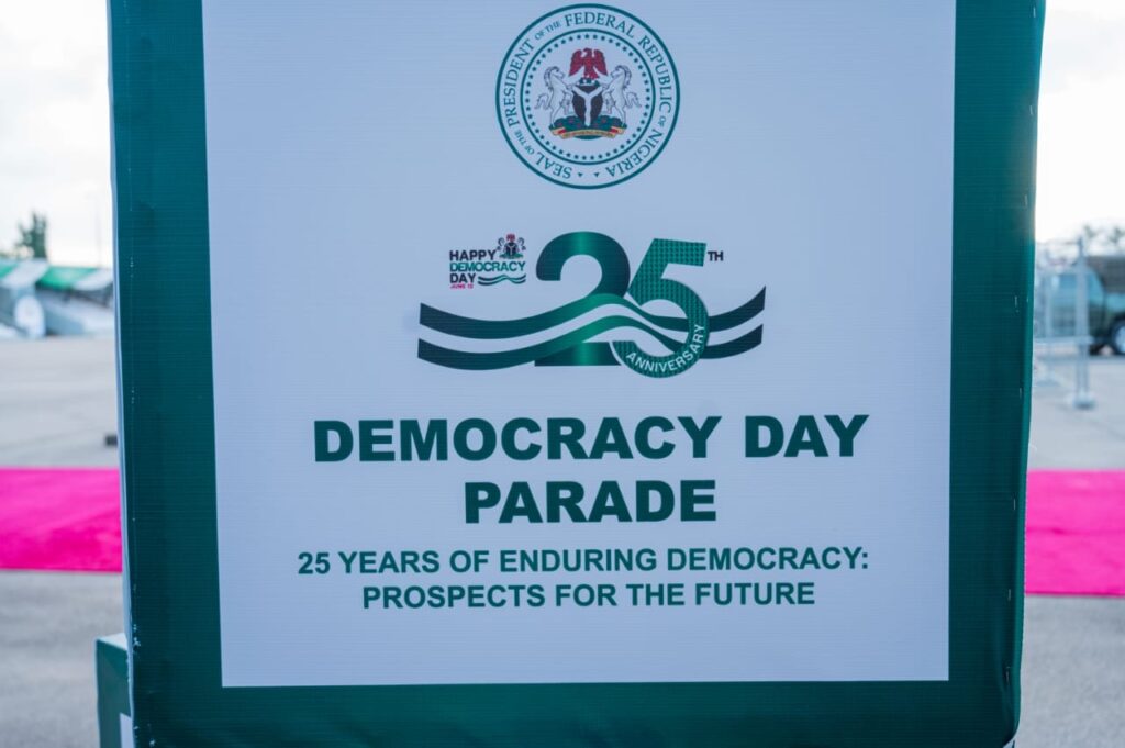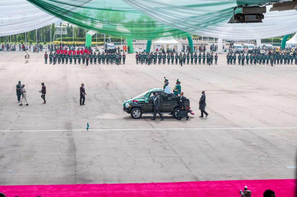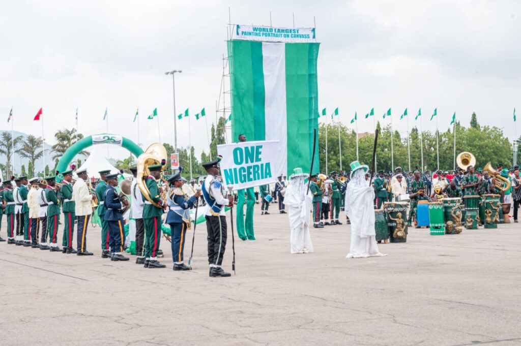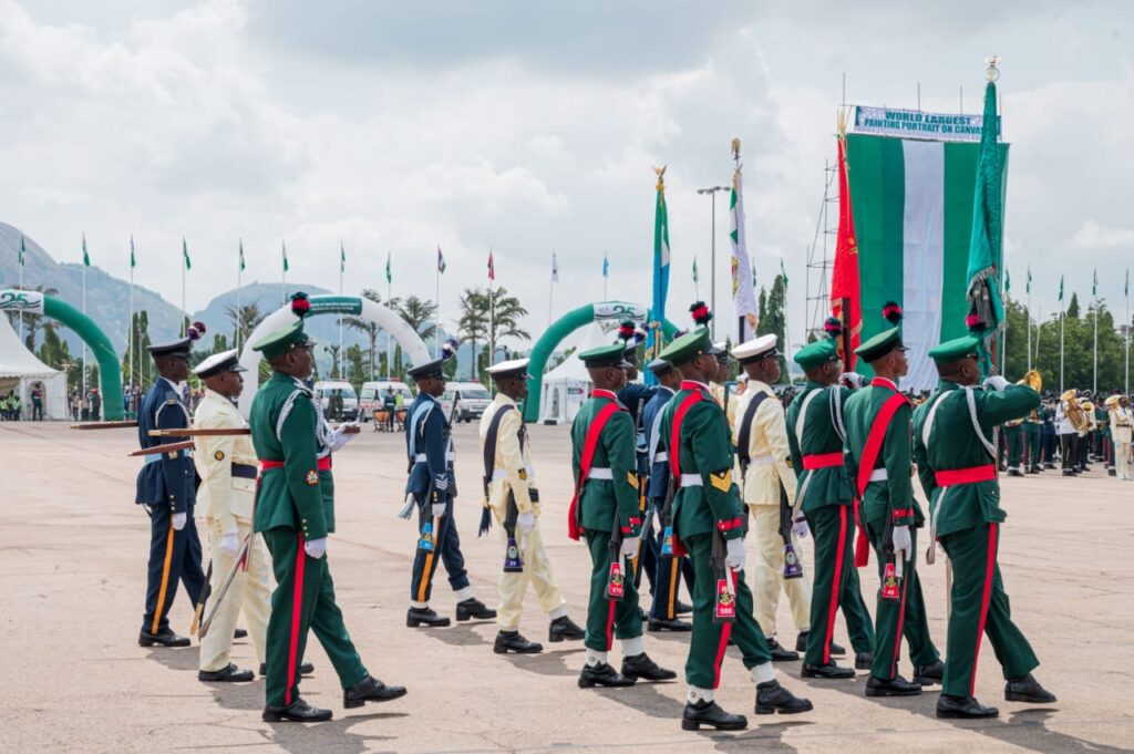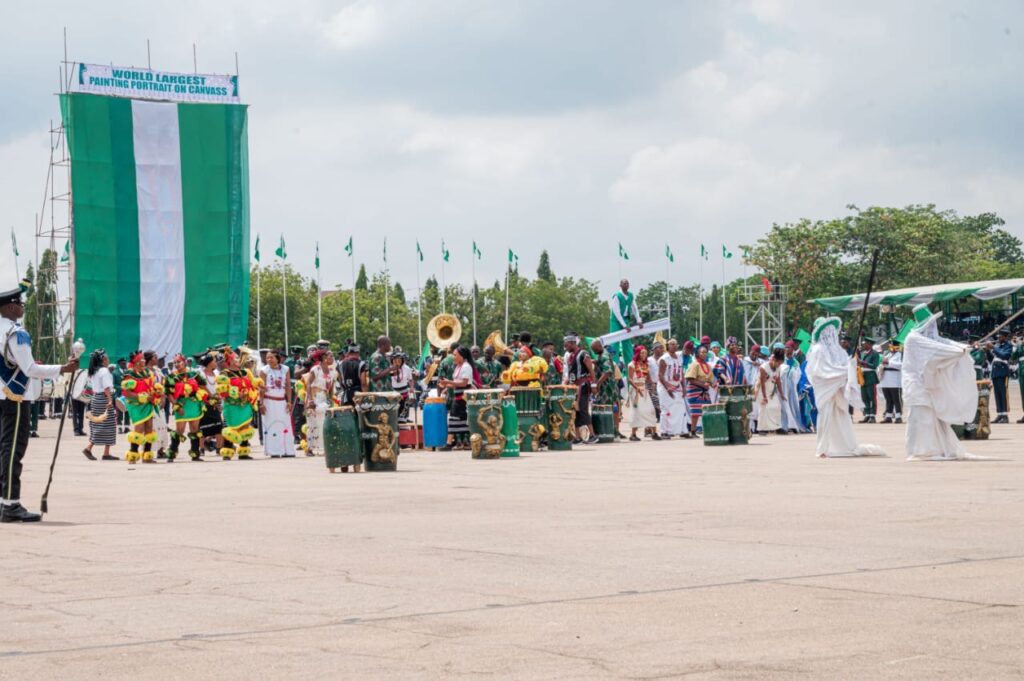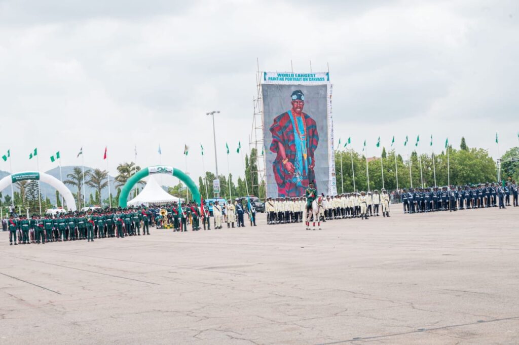 Highlights of the event was the unveiling of the largest portrait on canvass of the President, Commander-in-chief of the Armed Forces of the Federal Republic of Nigeria, march pass by various Guards,Guards Brigade silent drill display, mass band, and cultural troupes display from the six geographic zones and signing of Democracy Day register by President Bola Ahmed Tinubu (GCFR)