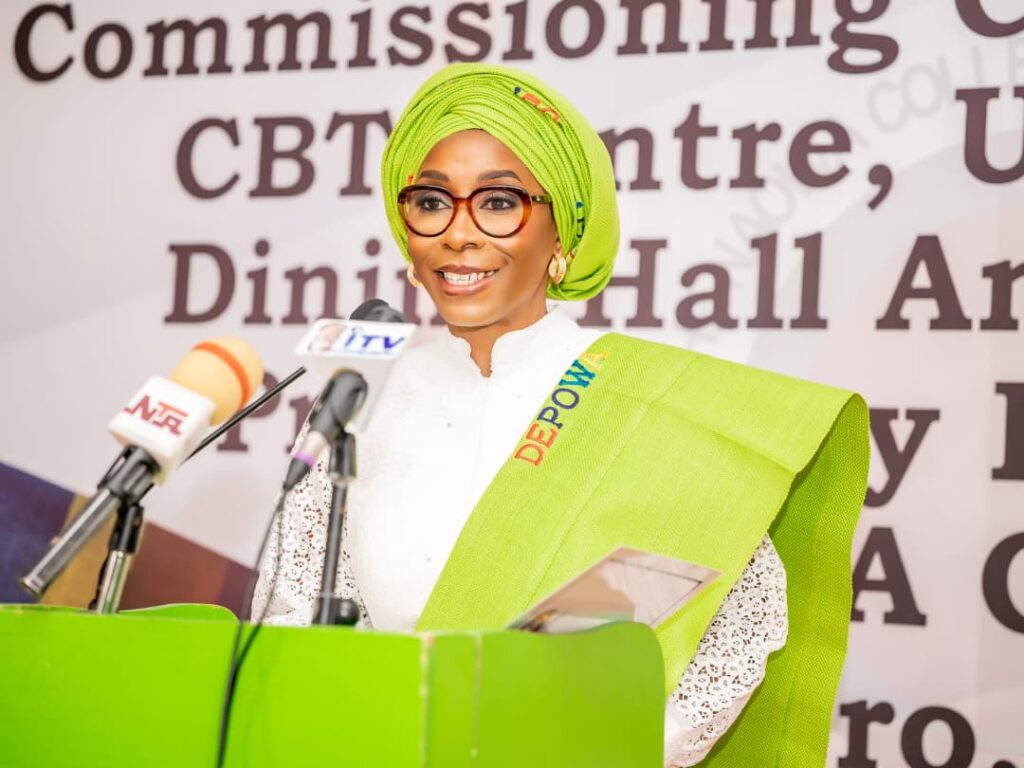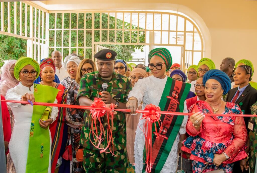 The President of the Defence and Police Officers’ Wives Association (DEPOWA), Mrs. Mernan Femi-Oluyede, on Wednesday, 25 February 2026, graced the commissioning of the Computer-Based Test (CBT) Centre, Dining Hall, and Preparatory Hall at the Nigerian Army Officers’ Wives Association College, Asokoro, Abuja—landmark projects initiated under her leadership as the 24th President of NAOWA and successfully completed through collaborative efforts with her successor, the 25th President of NAOWA, Mrs. Safiyyah Hassan Shaibu.