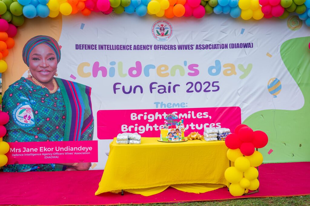 The President of the Defence and Police Officers’ Wives Association (DEPOWA), Mrs. Oghogho Gwabin Musa attended the Defence Intelligence Agency Officers’ Wives Association (DIAOWA) Children’s Day Fun Fair on 24 May 2025. The event, themed “Bright Smile, Brighter Future,” was held at the DIA Complex and featured celebrations filled with laughter and excitement.