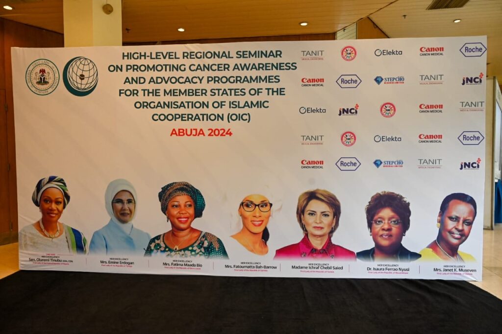 Her Excellency, the First Lady of the Federal Republic of Nigeria Senator Oluremi Tinubu CON, hosted a high -level regional seminar on promoting cancer awareness and advocacy programmes for the African member States of the Organisation of Islamic Cooperation Ladies. The event took place on Thursday, 16 May 2024, at the Transcorp Hilton Hotel Congress Hall Abuja. The seminar with the theme: “Innovation Approaches To Cancer Prevention and Early Detection ” had first ladies of the Organisation of the Islamic Cooperation that shared their national experiences on cancer control in their respective countries. The President DEPOWA Mrs Oghogho Gwabin Musa , NAOWA President Mrs Mariya Abiodun Lagbaja, among other dignitaries, graced the occasion. Remarks was made by her Excellency, the First Lady of the Republic of Tunisia Her Excellency Mademe Ichraf Saied, while the keynote address was delivered by the First Lady of the Federal Republic of Nigeria Senator Oluremi Tinubu CON.