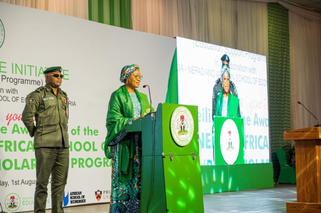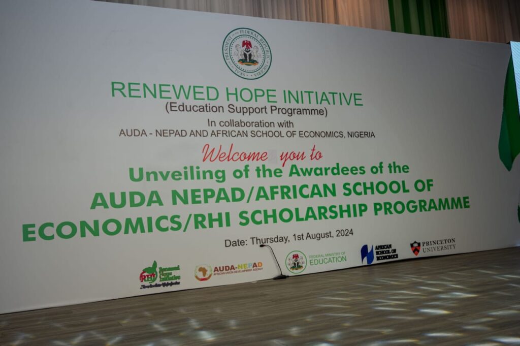 Her Excellency, the First Lady of the Federal Republic of Nigeria Senator Oluremi Tinubu CON on 1 August 2024 at the Banquet Hall of the Presidential Villa Abuja unveiled the Awardees of AUDA-NEPAD/African School of Economics/ Renewed Hope Initiative Scholarship Programme drawn from all states of the federation including the Federal Capital Territory. The President DEPOWA Mrs Oghogho Gwabin Musa and other wives of service chiefs and the wife of the Inspector General of Police were in attendance.