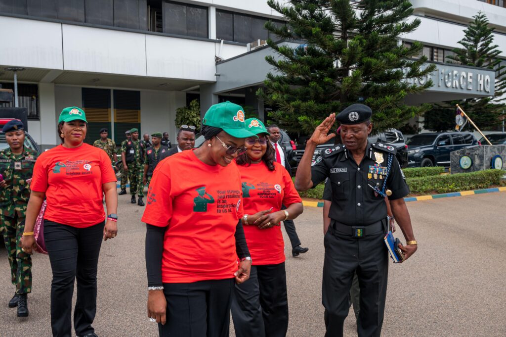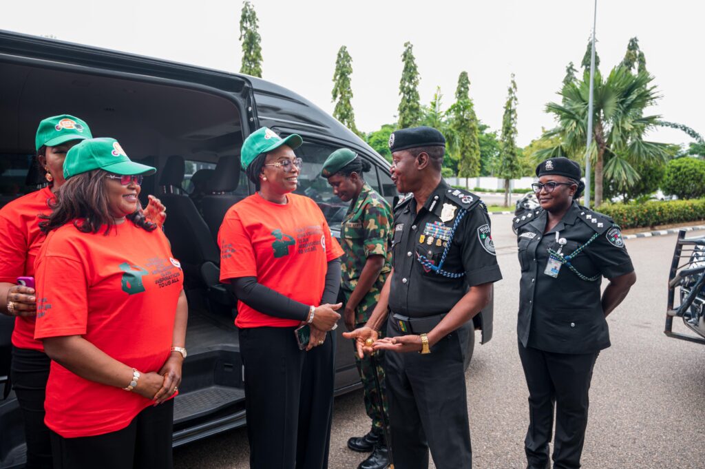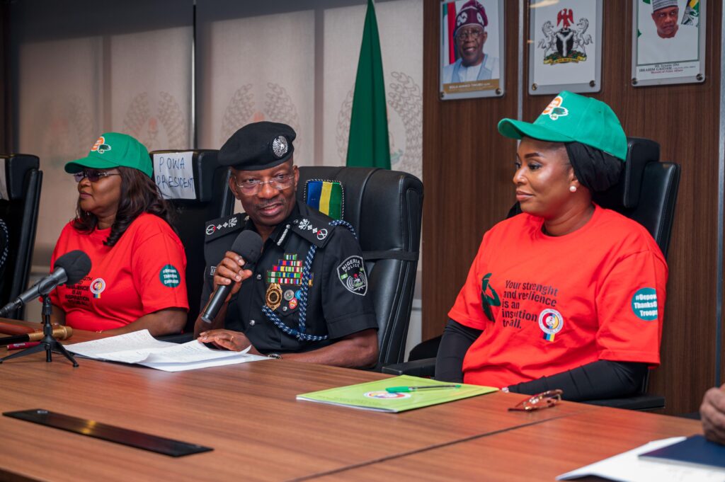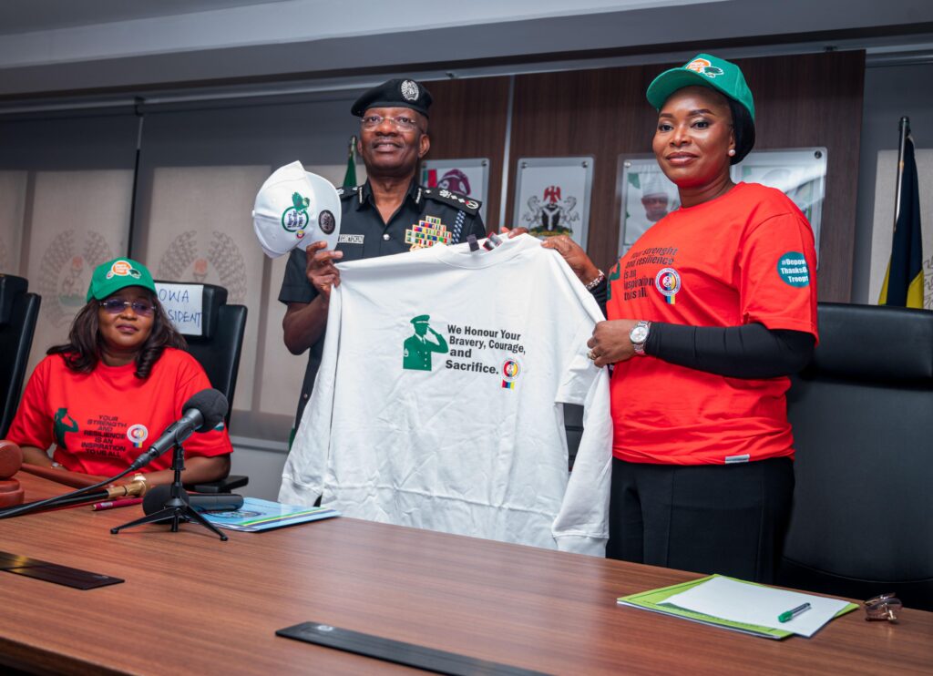 The President of the Defence and Police Officers’ Wives Association (DEPOWA), Mrs. Oghogho Gwabin Musa, accompanied by members of the association, paid a working visit to the Inspector General of Police (IGP) Kayode Adeolu Egbetokun, on 8 September 2025. The visit provided an opportunity to brief the IGP on DEPOWA’s “Thank You to Our Troops” national campaign.