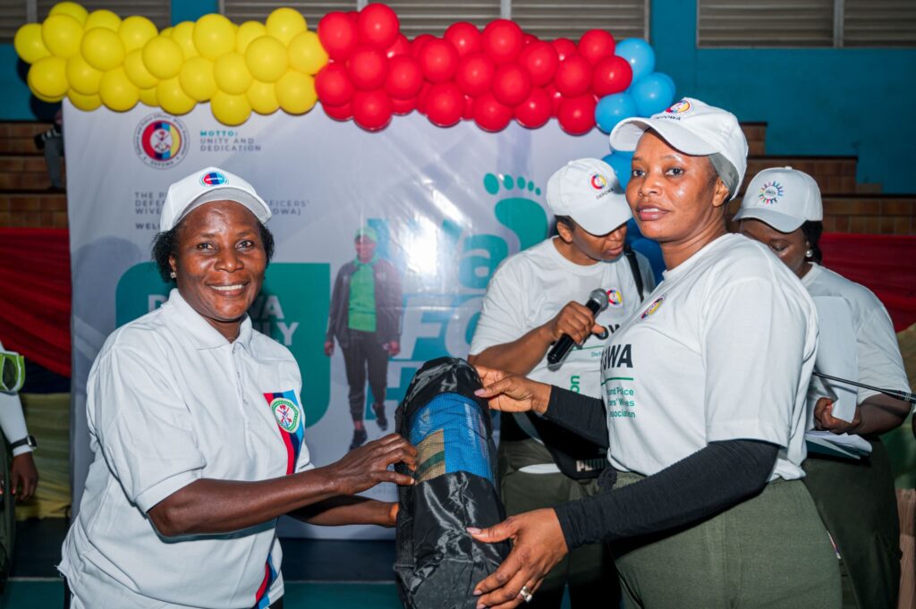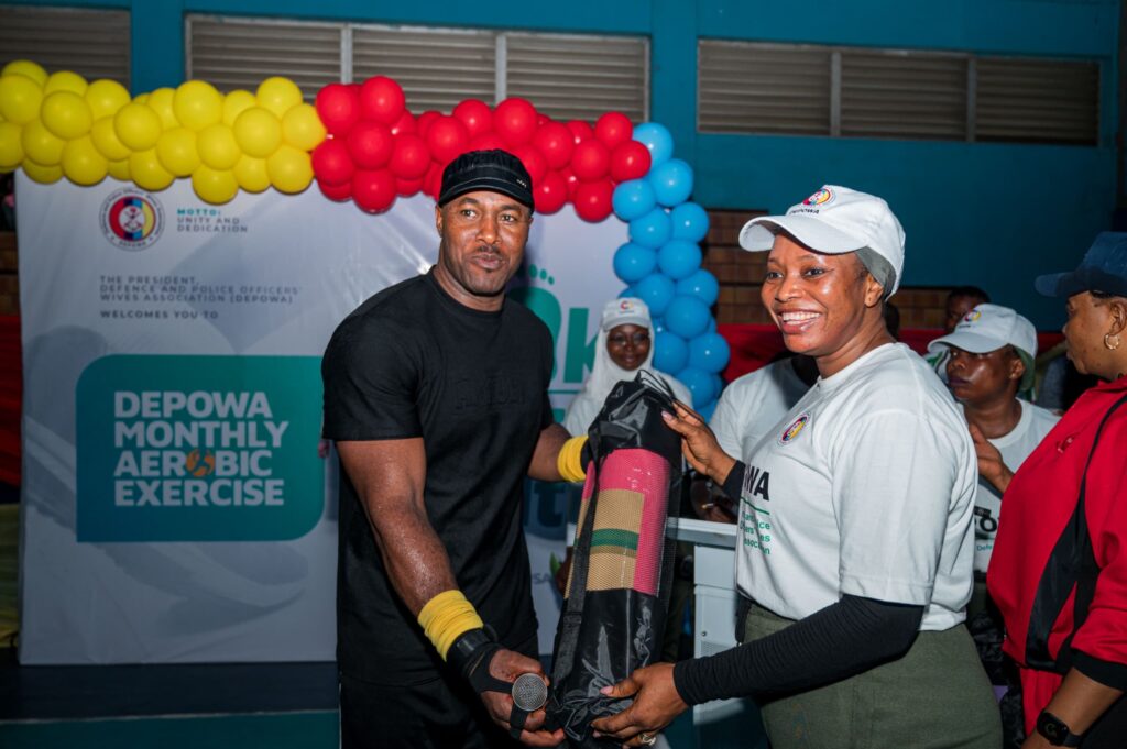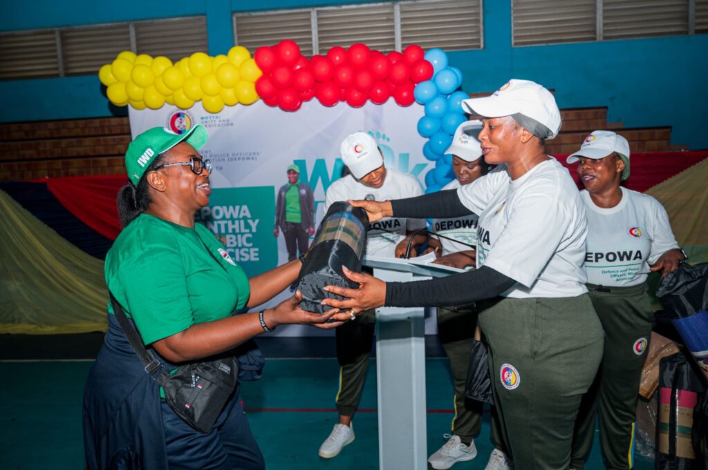 The President of the Defence and Police Officers’ Wives Association (DEPOWA), Mrs. Oghogho Gwabin Musa held the DEPOWA monthly aerobics exercise session at the Guards Brigade Indoor Sports Hall, Aguyi Ironsi Cantonment, Asokoro, Abuja on 5 July 2025.