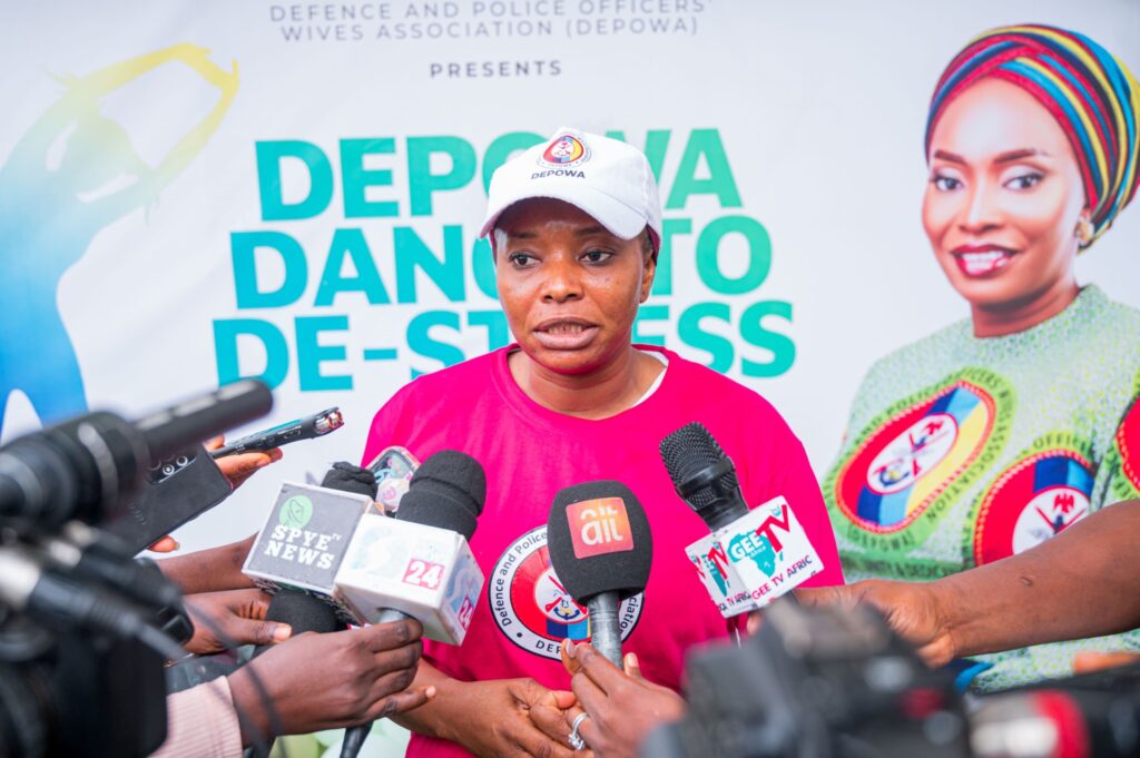 The President of the Defence and Police Officers’ Wives Association (DEPOWA), Mrs. Oghogho Gwabin Musa hosted the monthly aerobics exercise themed “Dance to De-Stress” at the Guards Brigade Indoor Sports Hall, Aguiyi Ironsi Cantonment, Asokoro, Abuja on 14th June 2025.