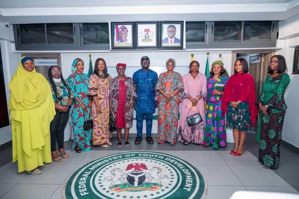 The President of the Defence and Police Officers’ Wives Association (DEPOWA), Mrs. Oghogho Gwabin Musa, on Friday, 12 September 2025, paid a courtesy visit to the Honourable Minister of Youth Development, Comrade Ayodele Olawande. She commended his numerous initiatives aimed at empowering Nigerian youths, particularly applauding the launch of the Nigeria Youth Academy in March 2025, which focuses on governance, policy-making, and community development, as well as the Youth Data Protection Awareness and Training Initiative that equips young people with vital skills for the digital economy.