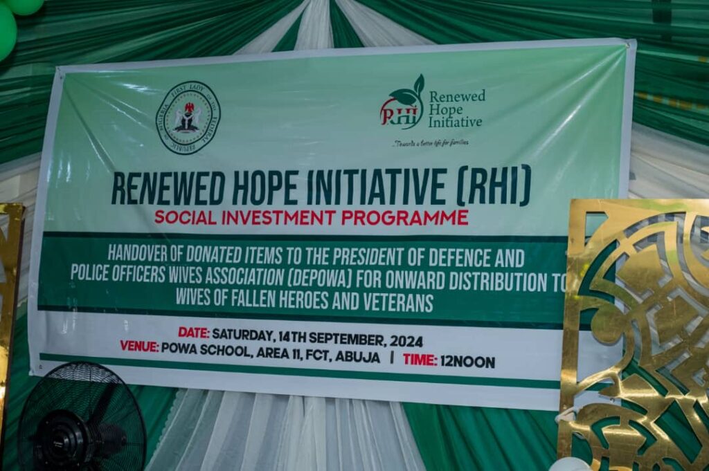 The First Lady of the Federal Republic of Nigeria Senator Oluremi Tinubu, CON and the Chairman, Renewed Hope Initiative has donated items for the empowerment of widows and veterans in the Armed Forces and the Police nation wide.